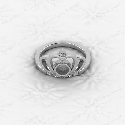 High Quality 925 Silver Princess Crown 6mm Round CZ Semi Mount Blank Bezel Breastmilk Keepsake Resin Ashes Ring Setting Jewelry