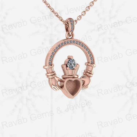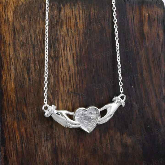 High Quality 925 Silver Iris Celtic Claddagh 5mm Heart Blank Bezel Setting Charm Pendant With CZ Settled Keepsake DIY Jewelry