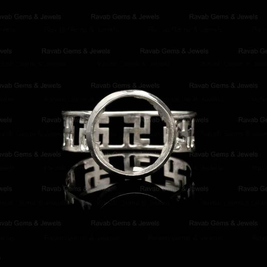 High Quality 925 Solid Silver 10mm Oval Pre Notched Swastik Band Semi Mount Blank Bezel Setting Ring for Stone & Ashes Resin
