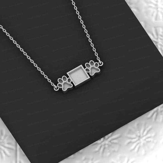 High Quality 925 Silver Dog Paw & Square Collet Blank Setting Semi Mount Charm Pendant Ashes Resin Jewelry Finding Components