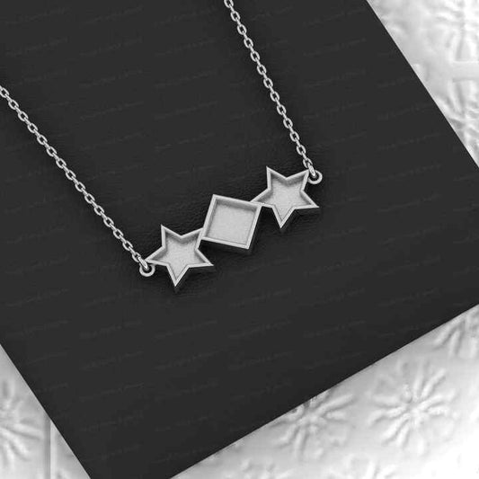 High Quality 925 Silver Star Square Collet Cup Semi Mount Charm Pendant Necklace Setting Ashes Resin Jewelry Findings