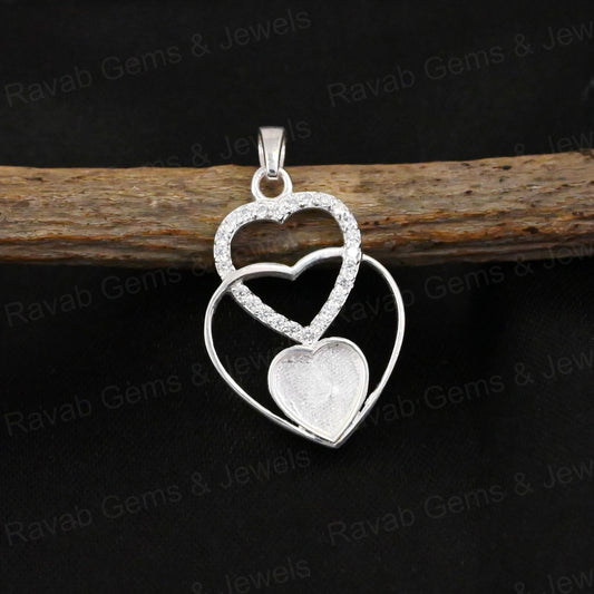 High Quality 925 Silver 8mm Tray Triple Heart CZ Semi Mounting Charm Pendant Setting Resin Ashes Keepsake Breastmilk DIY Jewelry