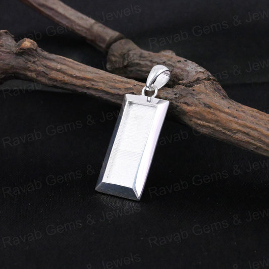 High Quality 925 Silver Rectangle Collet Cup Charm Blank Pendant Cabochon Setting Ashes & Resin Work Keepsake Breastmilk Jewelry