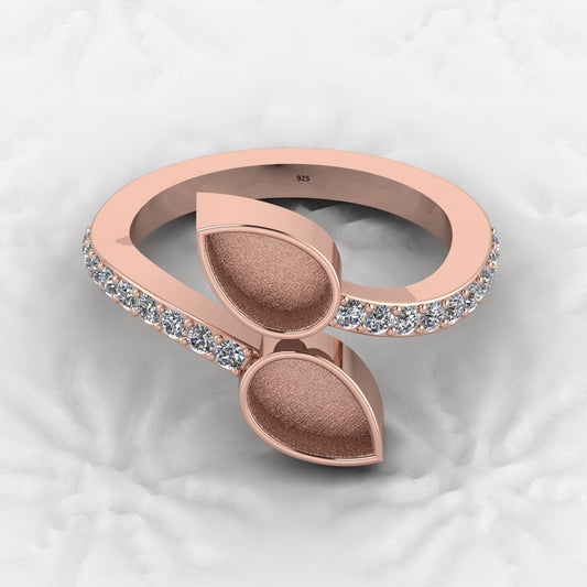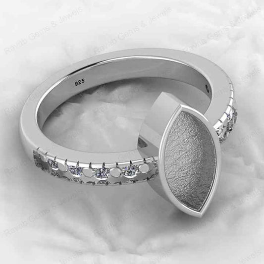 High Quality Genuine 925 Silver 7x5mm Pear Semi Mount Blank Setting Adjustable Ring Good for Gemstone Ashes & Resin Work Jewelry