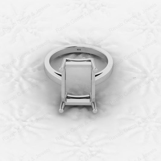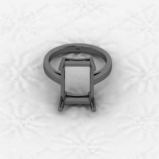 High Quality 925 Sterling Silver 8x6mm Octagon With CZ Semi Mount Fine Gemstone Jewelry Prong Setting Ring for Women