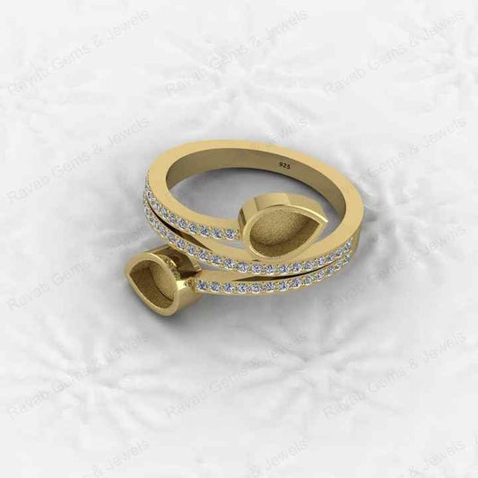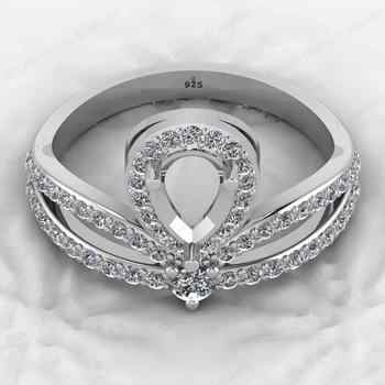 High Quality 925 Sterling Silver 8x5mm Pear CZ Semi Mount Blank Pave Micro Setting Cocktail Ring Good for Fine Gemstone Jewelry