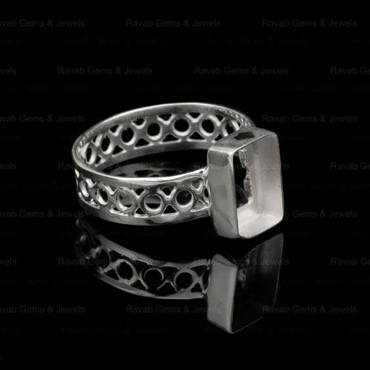 High Quality 925 Sterling Silver 8x10mm Rectangle Pre Notched Semi Mount Blank Bezel Setting Ring Stone Ashes Resin Jewelry