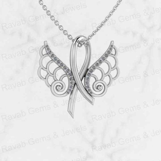 Hot Selling Solid 925 Sterling Silver 24x24mm Angel Wing & Bow Design Prong Setting CZ Pendant Pendant for Women Fine Necklace