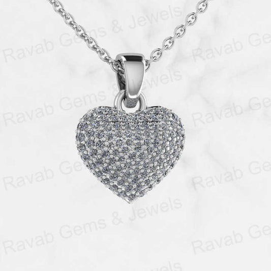 New Arrival 925 Silver 14mm Pave Diamond CZ Puffy Heart Love Hip Hop Charm Pendant Necklace Memorial Fine Jewelry For Women