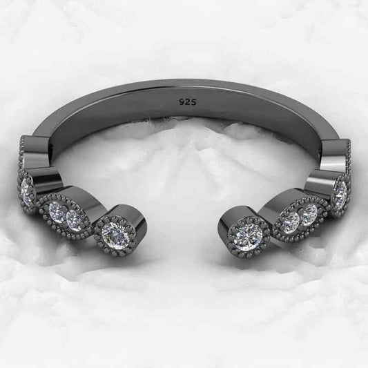 Minimalist 925 Silver Vermeil Women's Fine Jewelry Adjustable Designer Half Eternity CZ Wedding Band Ring