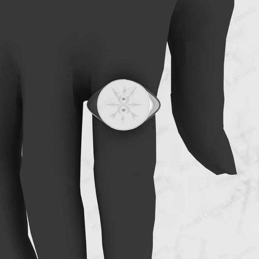 Hot Selling Genuine 925 Sterling Silver North Star Compass Engraved Monogram Signet Men's Ring Customized Personalized Jewelry