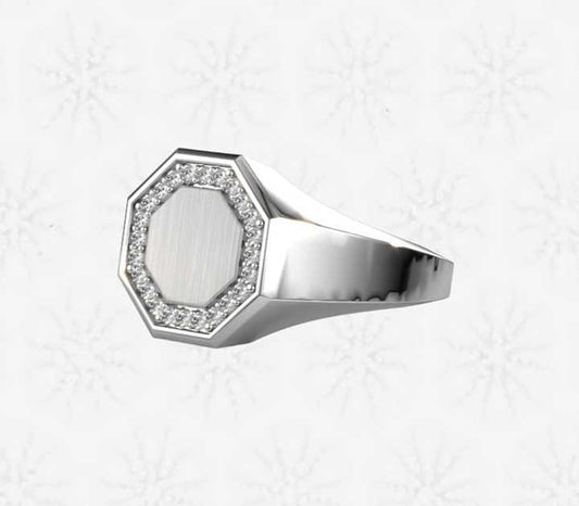 Mother's Day Sale Solid 925 Sterling Silver Hexagon Shape Engraving CZ Signet Ring for Women & Men Fine Handmade Unique Gifts