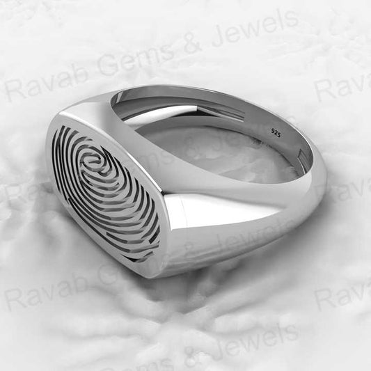 Hot Selling 925 Genuine Sterling Silver Octagon Cushion Thumbnail Print Signet Personalized Designer Jewelry Men Fine Rings
