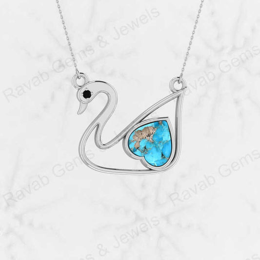 Hot Selling 925 Sterling Silver 10mm Pyrite Turquoise Heart Swan Bird Design Pendant Necklace High Quality Women's Fine Jewelry