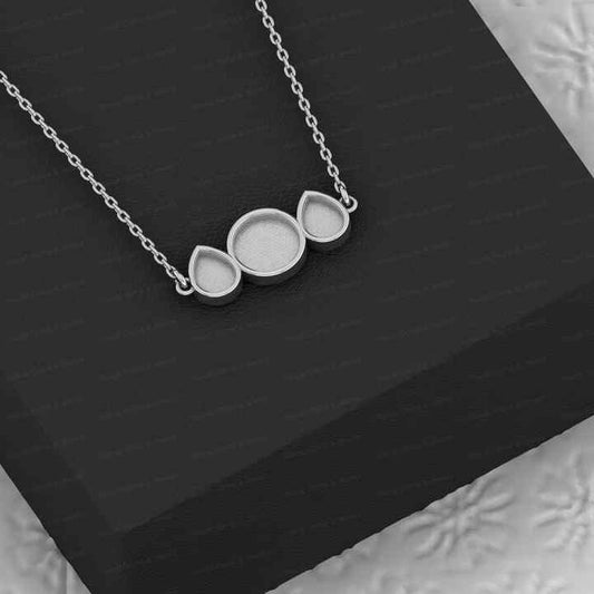 New 925 Silver Pear Round Collet Bezel Cup Semi Mount Charm Pendant Necklace Setting Jewelry Findings Components