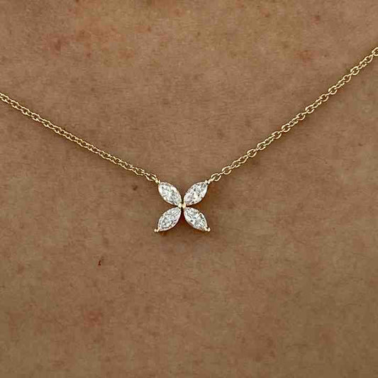 Mother's Day Sale Solid 925 Sterling Silver Marquise Brilliant Cut Lab-Diamond Clover Design Necklace For Women's Gifted Jewelry