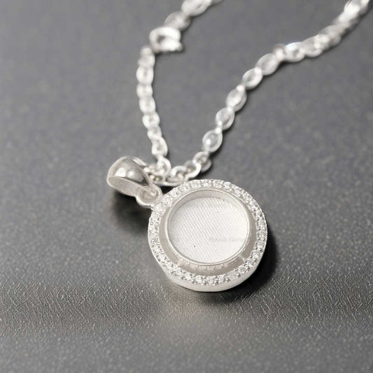 Hot Selling 925 Sterling Silver 10mm Round Semi Mount CZ Pendant Empty Support Base Holder Without Stone For DIY Craft Jewelry