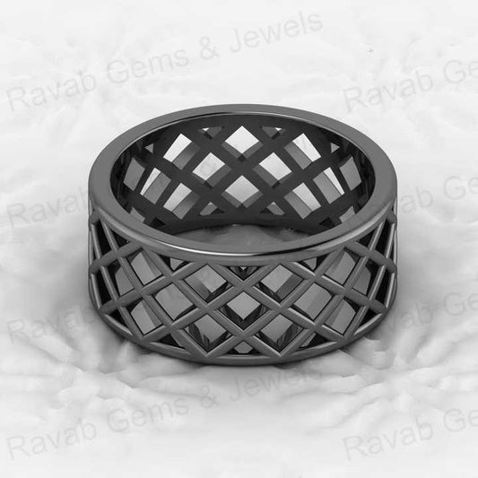 New Arrival Genuine 925 Sterling Silver 9mm Wide Band Checkered Pattern Filigree Personalized Men's Ring Fine Handmade Jewelry