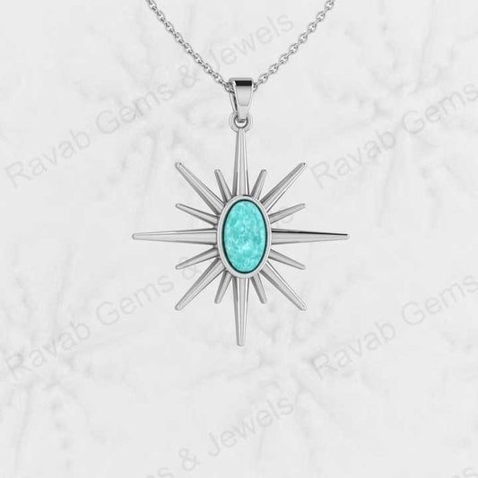 New Arrival Solid 925 Sterling Silver Natural Amazonite 6x10mm Flat Oval Compass Design Bezel Setting Fine Pendant for Women