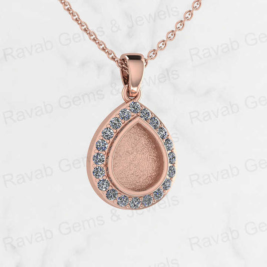 New Arrival 925 Sterling Silver 8x10mm Charm Pendant Semi Mounting Tear Drop Pear Surrounded by CZ for Resin Ashes Work Jewelry