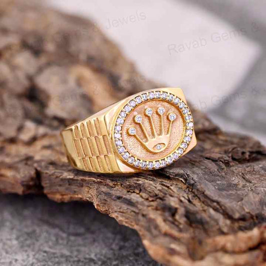 New Arrival Solid 925 Sterling Silver Ottoman Style CZ Prong Setting King Of Crown Signet Ring For Men's Fine Handmade Jewelry