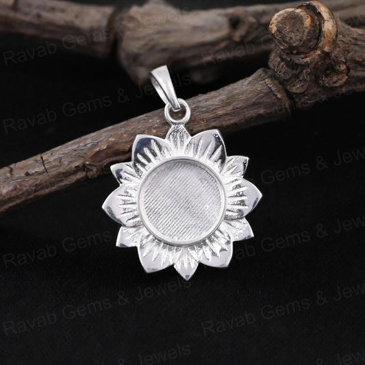 New Arrival 925 Silver Blank Collet Bow Style Bezel Cup Semi Mount Charm Pendant Necklace Setting Jewelry Findings Components