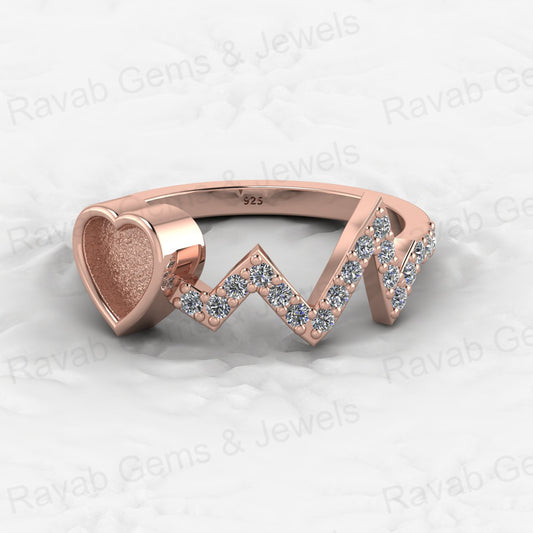 Solid 925 Sterling Silver Semi Mount Ring Initials Heart Blank Setting with Resin Ashes Breastmilk Jewelry-Genuine Product