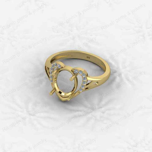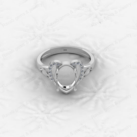 Solid 925 Sterling Silver Oval 8x10mm Semi Mount Blank Setting Heart Ring for Gemstone Ashes & Resin Findings & Wedding Jewelry
