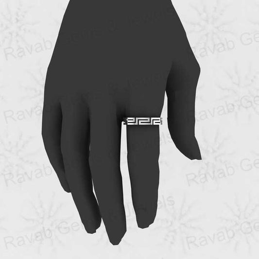 Solid 925 Sterling Silver Vermeil Greek Key Meander 4mm Eternity Wide Band Ring Bikers Adventured Men's Ring for Fine Jewelry