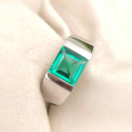 Sparkling Emerald Quartz 10mm Square Step Cut Gemstone Solid 925 Sterling Silver Ring For Mens Fine Handmade Jewelry Suppliers