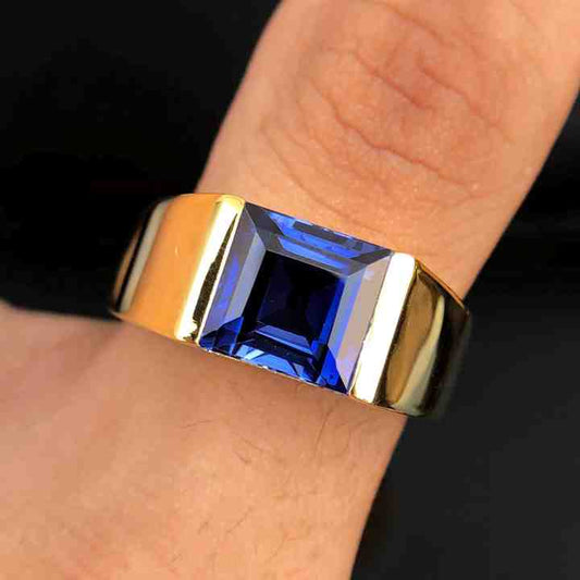Sparkling Sapphire Quartz 10mm Square Step Cut Gemstone Solid 925 Sterling Silver Ring For Mens Fine Handmade Jewelry Suppliers