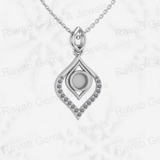 Solid 925 Sterling Silver With CZ 14x20mm Water Drop Semi Mount Blank Charm Pendant Stone Setting for Resin Ashes Work Jewelry