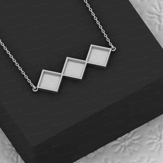 Superb 925 Square Kite Shape Collet Bezel Cup Semi Mount Charm Pendant Necklace Setting Valentine Jewelry Findings Components