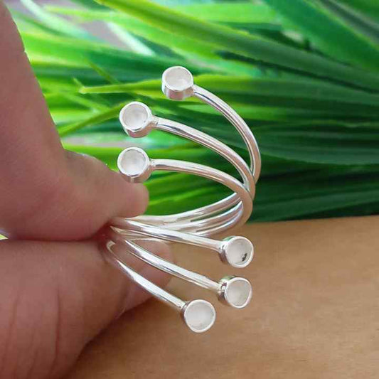Solid 925 Sterling Silver Plain Bezel Cup Round Close Blank Collet Ring Bezel Setting Semi-Mount Blank Setting Ring Jewelry