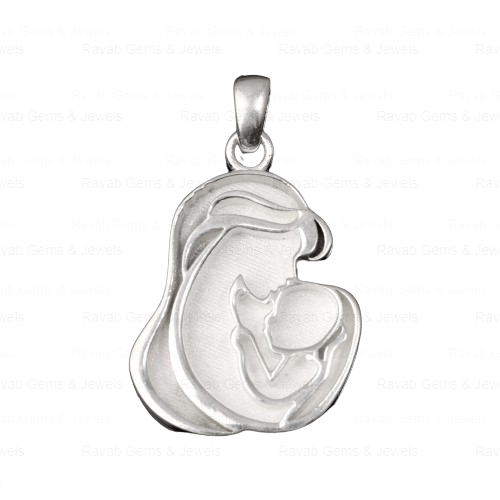 Solid Real 925 Sterling Silver 25mm Mother Kissing Baby Semi Mount Charm Pendant Blank Setting for Resin & Ashes Work Jewelry