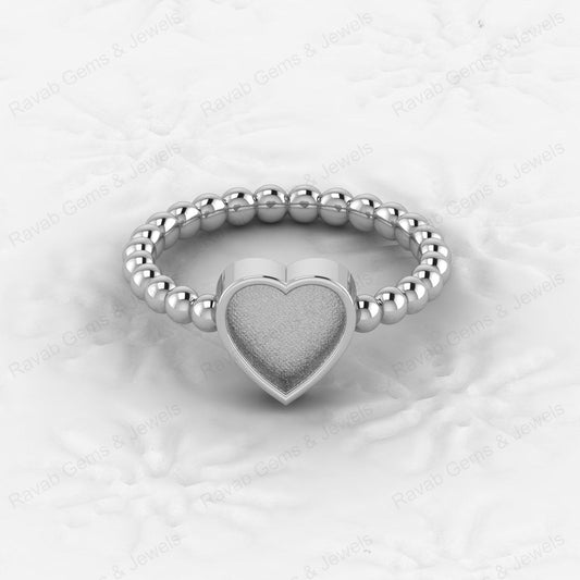 Top Quality 925 Sterling Silver 8mm Heart Semi Mount Beaded Band Ring Good for Resin & Ashes Work Keepsake Breastmilk Jewelry