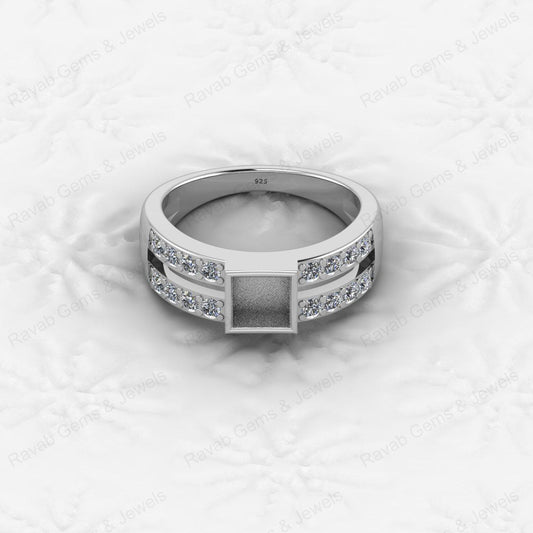 Top Quality 925 Silver 7X7mm Double Band With CZ Semi Mount Blank Setting Ring Good for Resin & Ashes Work Keepsake DIY Jewelry