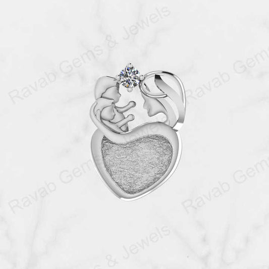 Top Quality 925 Sterling Silver Mom Child Love Heart Charm Semi Mount Blank Setting Pendant Good for Ashes & Resin Work Keepsake