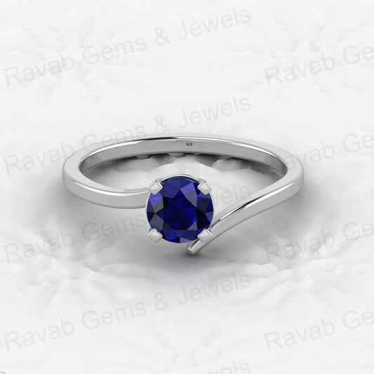 Top Quality 925 Sterling Silver 5mm Round Cut Blue Sapphire Hydro Vermeil Eternity Prong Setting Solitaire Bypass Ring for Women