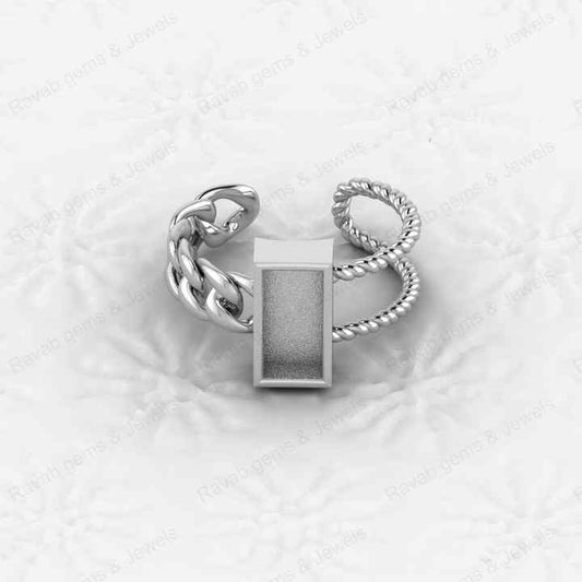 Top Quality 925 Sterling Silver 5x10mm Rectangle Semi Mounting Twisted Band Base Ring Setting for Resin & Ashes Keepsake Jewelry