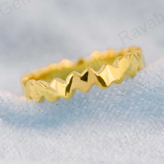 Top Selling 925 Sterling Silver Vermeil Heart Shape Zick Zack Personalized Dainty Eternity Band Ring Minimalist Fine Jewelry