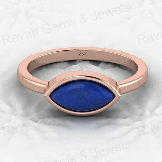 Top Selling Genuine 925 Sterling Silver Natural 5x10mm Lapis Lazuli Gemstone Marquise Bezel Ring for Women Fine Jewelry