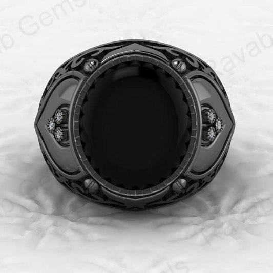 Top Selling Customized Jewelry Solid 925 Sterling Silver 13x15mm Oval Black Onyx Gemstone Classic Turkish Signet Ring for Man