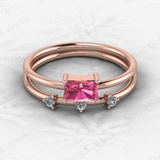 Top Selling Genuine 925 Silver 6X4mm Baguette Cut Pink Cubic Zirconia Women Eternity Gold Vermeil Ring for Fine Custom Jewelry