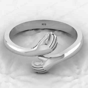 Top Selling 925 Silver Vermeil Eternity Hugging Love Hand Couple Personalized Dainty Adjustable Ring Minimalist Fine Jewelry