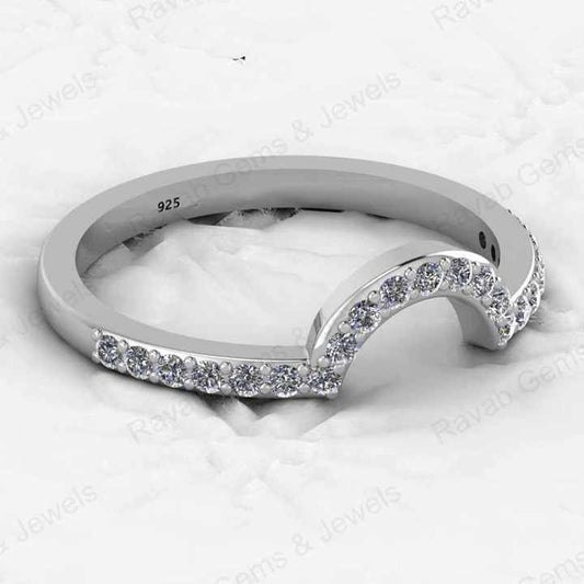 Top Selling Genuine 925 Silver Vermeil Half Eternity Band Dainty Micro Pave CZ Crescent Curve Minimalist Women Ring Fine Jewelry