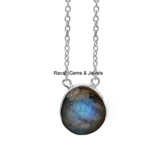 Top Selling Genuine 14x15mm Labradorite Gemstone 18k Gold Plated Sterling Silver Dainty Chain Organic Shape Necklace for Women