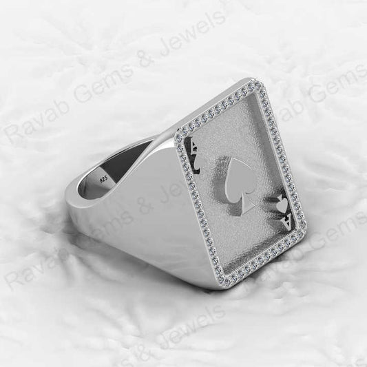 Top Selling Men's 925 Silver Accented Playing Card Gambler Ace Black Spade Signet Embossed Ring Zircon Diamond Motorhead Jewelry