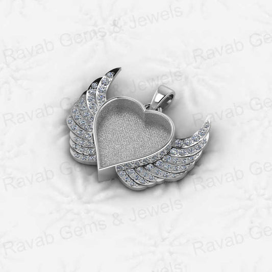 Best Selling Keepsake Jewelry Genuine 925 Silver Heart Charm Wing Pendant Base Blank Bezel Semi Mounting Stone Setting Supplier