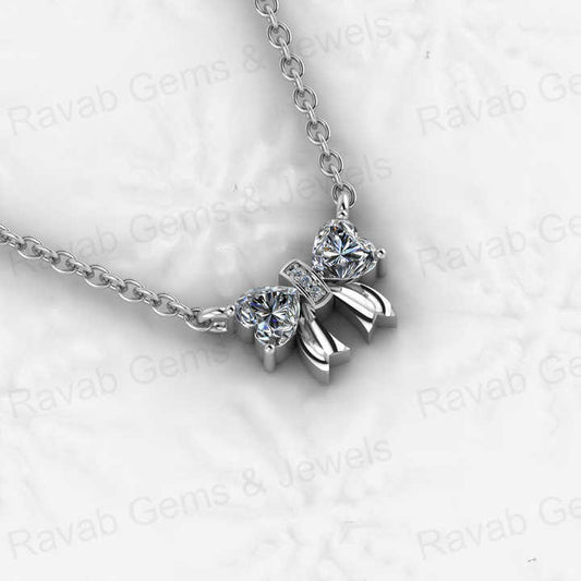 Best Selling Genuine Solid 925 Sterling Silver 5mm Heart Bow Tie Design With Cubic Zirconia Pendant Necklace Keepsake Jewelry